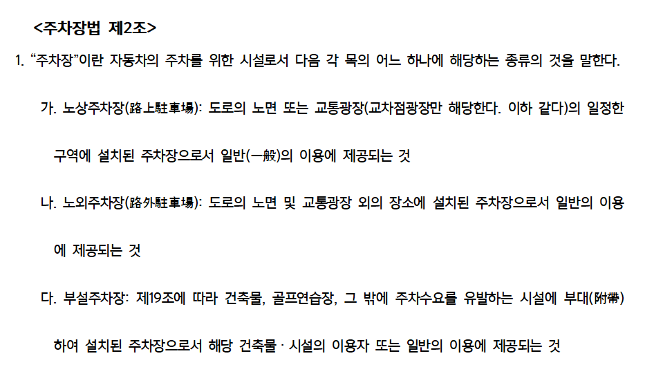 가. 전세버스가 등록한 차고지를 이용하지 않고 차고지가 아닌 「주차장법」 제2조1호 나목 또는 다목에 따른 주차장에서 주차한 경우 밤샘주차 허용